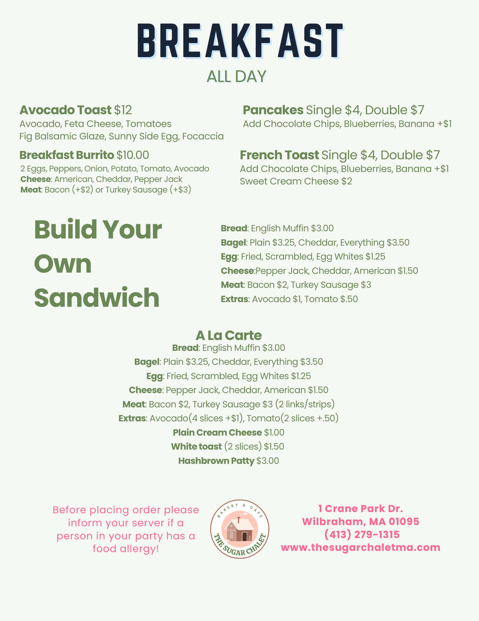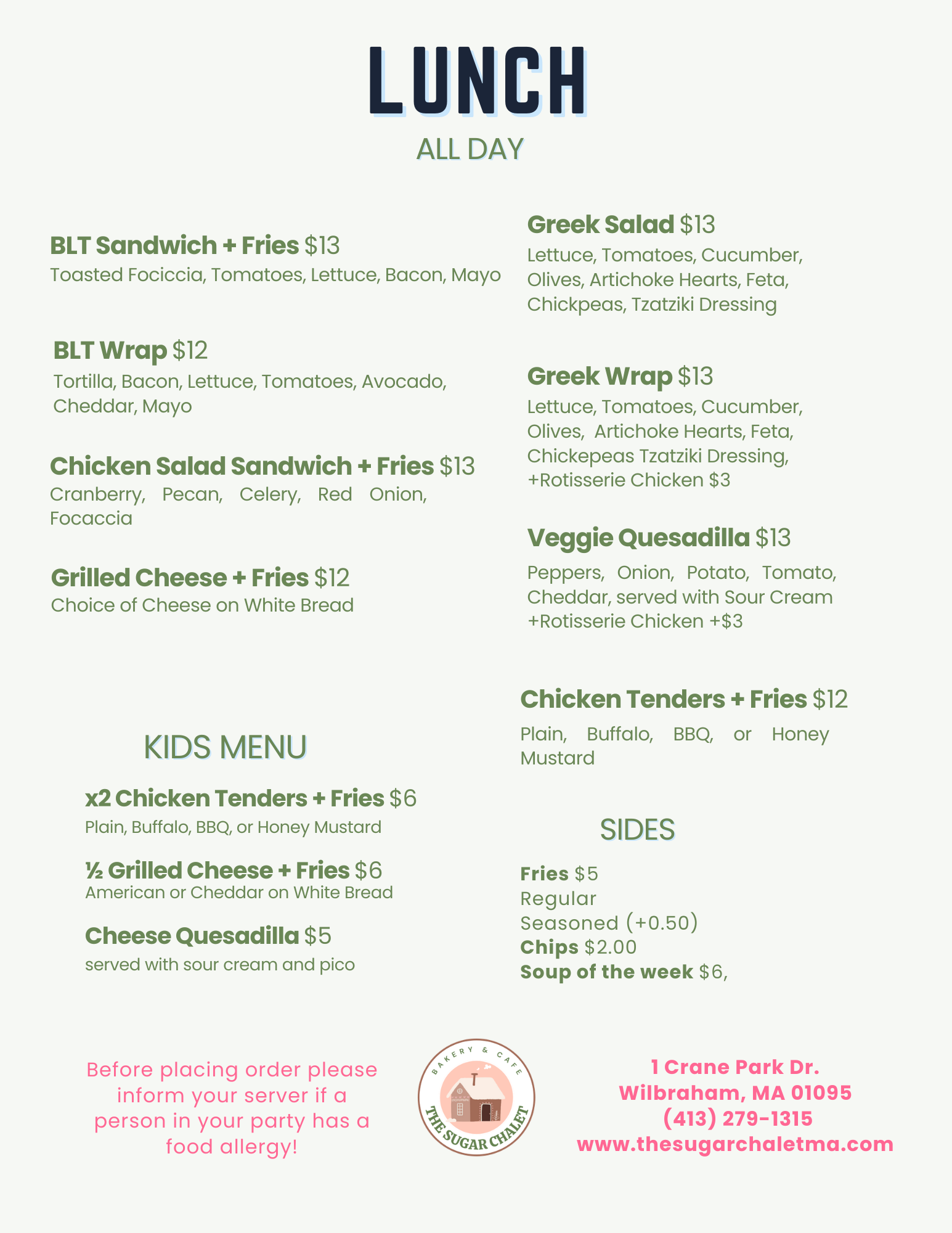 Menu subject to change based on availability.